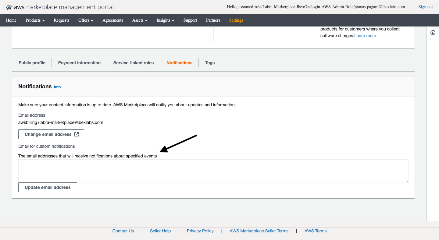 Adding this email address ensures that certain Marketplace events—such as offer acceptance—can be captured when AWS does not emit a corresponding event immediately.